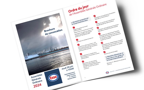 Couverture de la brochure de convocation à l'Assemblée Générale Ordinaire 2025 d'Esso S.A.F.